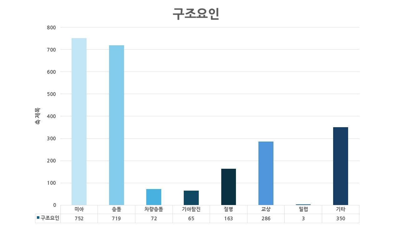 (미아 757건, 충돌 719건, 포식자 공격 286건 등)