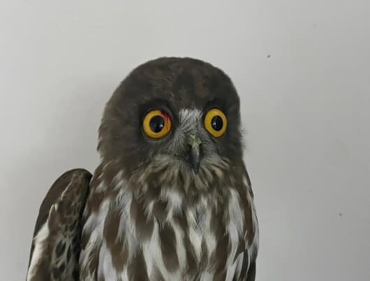 (안구에 출혈이 보이는 솔부엉이, 구조센터로의 인계가 필요하다)