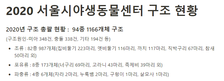 2020년도 서울시야생동물센터 구조 현황
