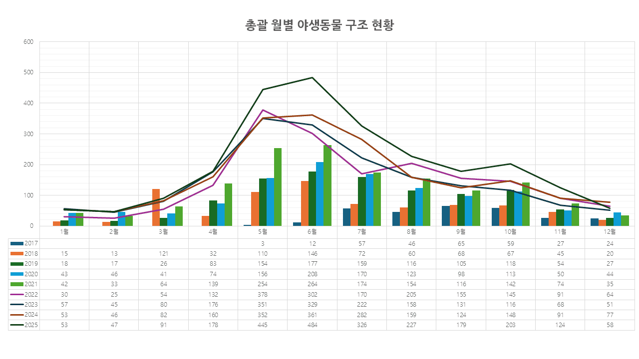 2025년도 서울시야생동물센터 구조 현황
