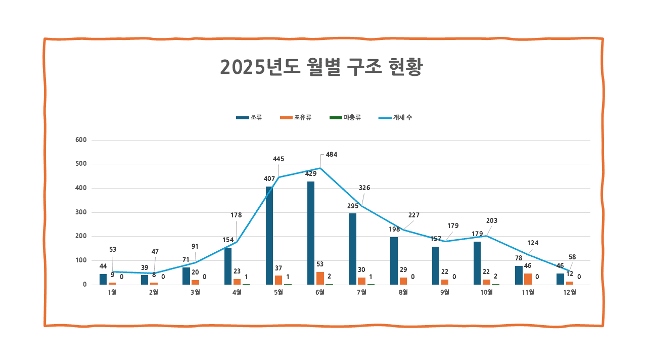2025년 구조 총괄 현황: 109 2,415 개체 구조